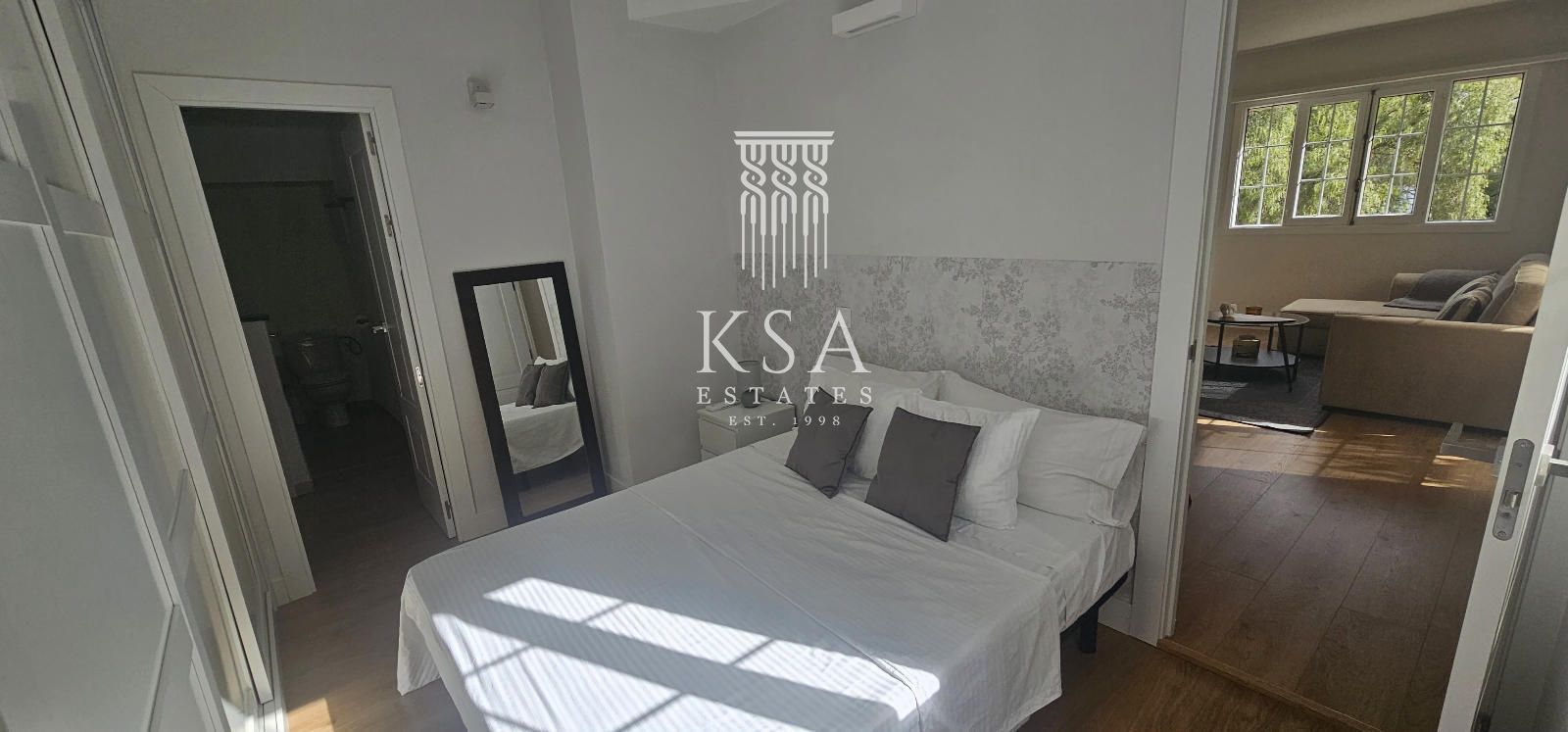 ALQUILER TEMPORAL. Desde Enero 2026 hasta final de mayo 2026.  Illetas, a tan solo 80 metros del mar, encantador apartamento en edificio con jardines y piscina salada. Este luminoso apartamento con orientación sur-oeste, tiene un acogedor salón comedor con salida a terraza con vistas a los jardines y a la piscina. cocina abierta, dos dormitorios con armarios empotrados, el principal con baño en suite y jacuzzi, otro dormitorio doble y otro baño con ducha. Equipmiento: suelos parket, aire acondicionado frio/ calor, ventanas climalit, cocina equipada, descalcificador de agua, armarios empotrados, ascensor.