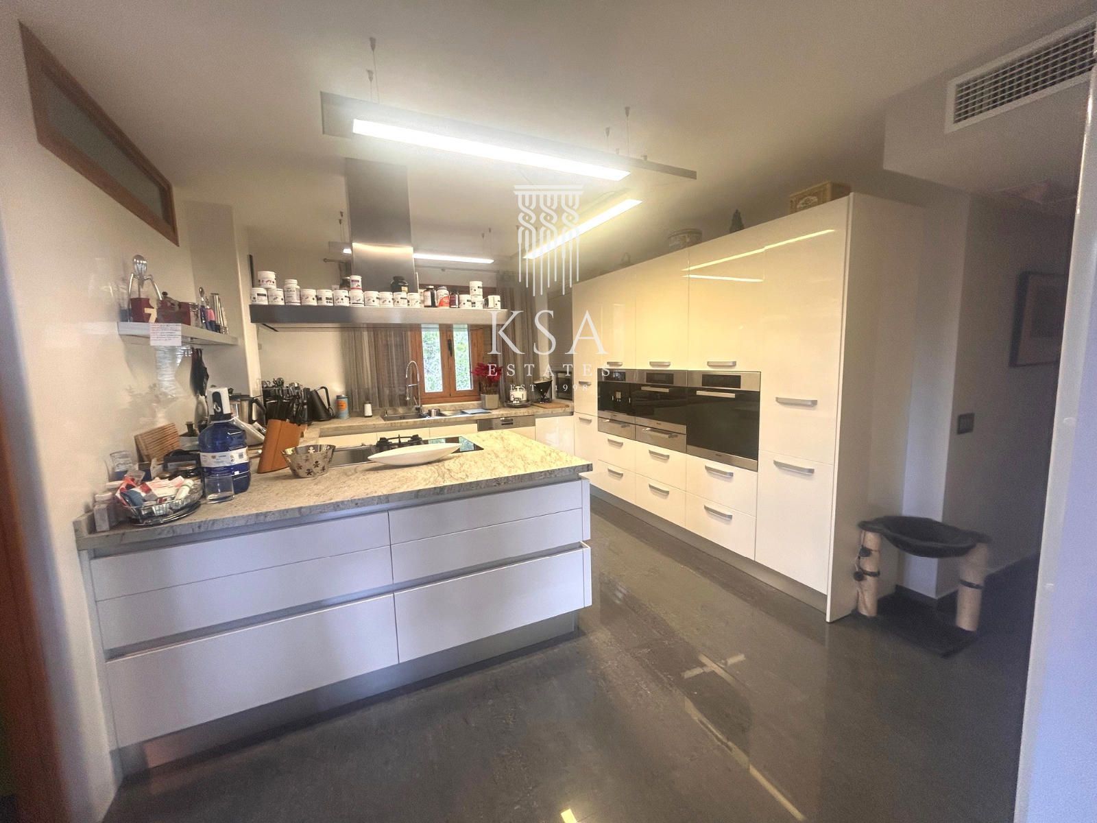 La cocina, con península central y equipada con electrodomésticos Miele, es un espacio diseñado tanto para los amantes de la gastronomía como para compartir momentos especiales, convirtiéndose en un auténtico punto de encuentro.