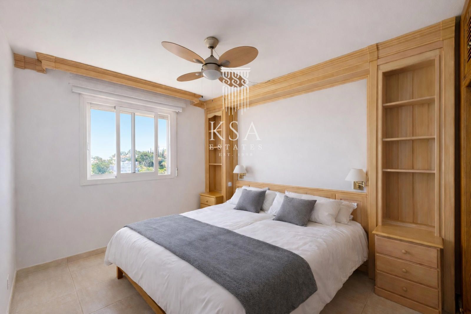 En la primera planta se encuentran tres dormitorios dobles (dos con vistas al mar y uno al bosque) y dos baños completos, uno en suite. Aquí ya hay aire acondicionado instalado.