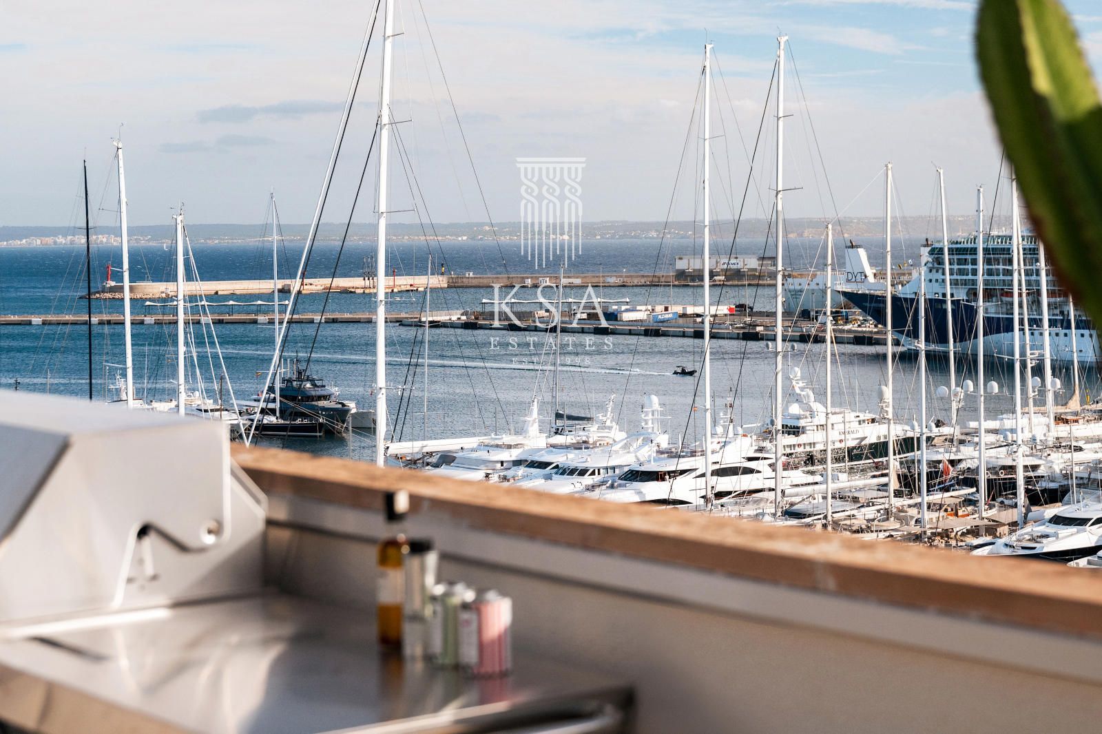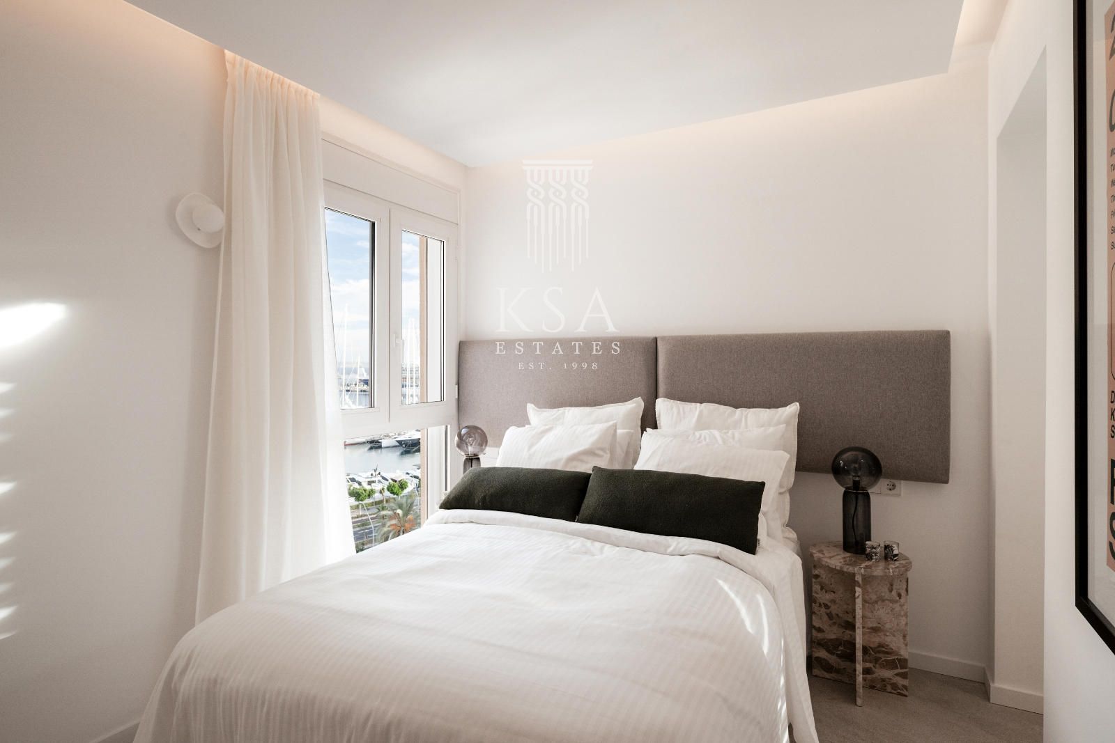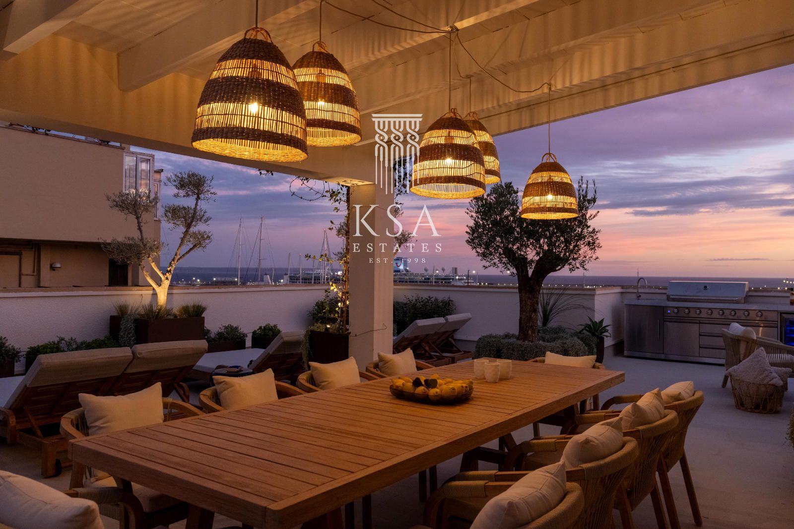 Perfectamente ubicado para disfrutar de vistas al mar ininterrumpidas y del dinámico ambiente del puerto, este ático combina de forma armoniosa la comodidad urbana con amplios espacios exteriores. Construido originalmente en 1993, la propiedad ha sido completamente renovada en 2025, incorporando una estética contemporánea y conservando un total de 238 m² entre espacios interiores y terrazas.