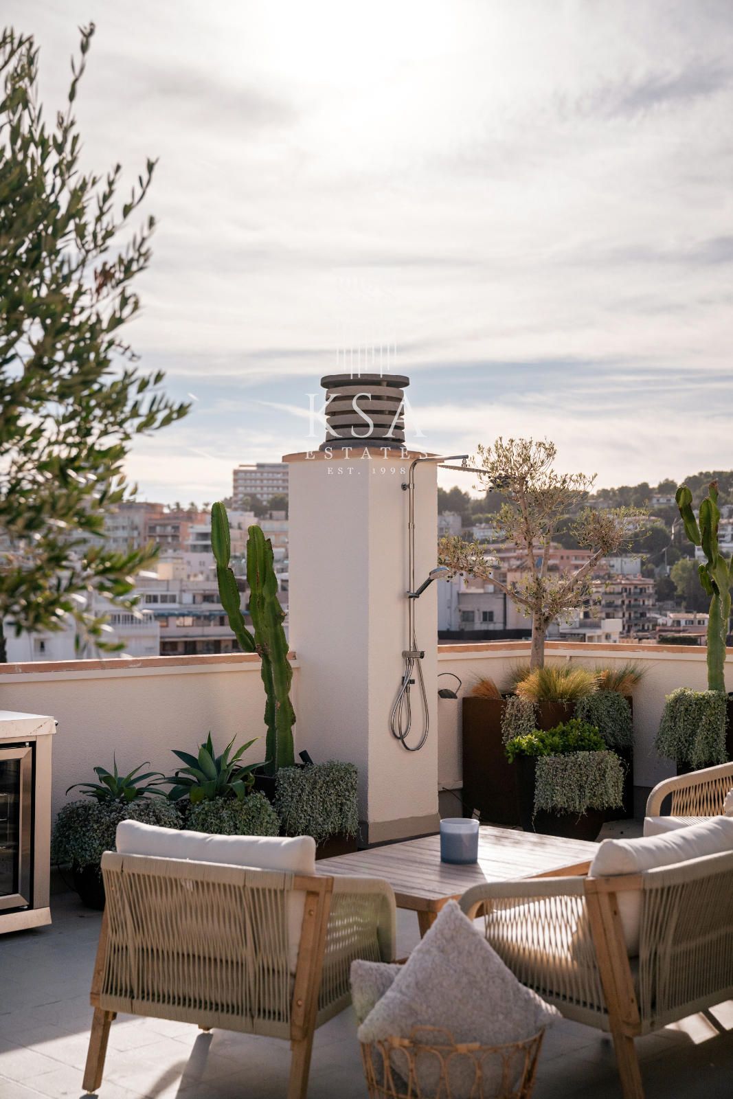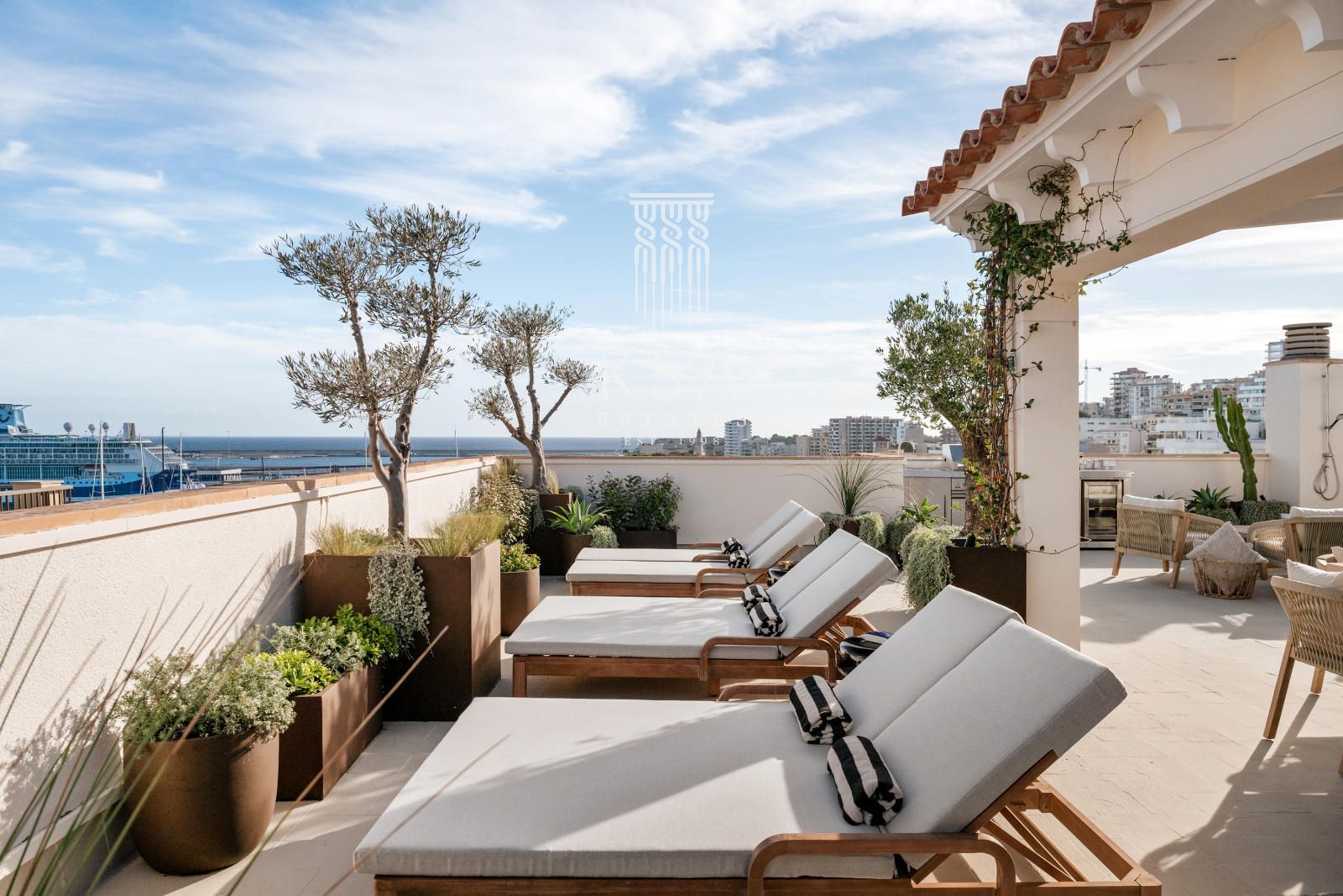 Este ÁTICO destaca por su ubicación, sus vistas excepcionales y su cuidado diseño, convirtiéndose en una extraordinaria vivienda costera en uno de los barrios más deseados de Palma
