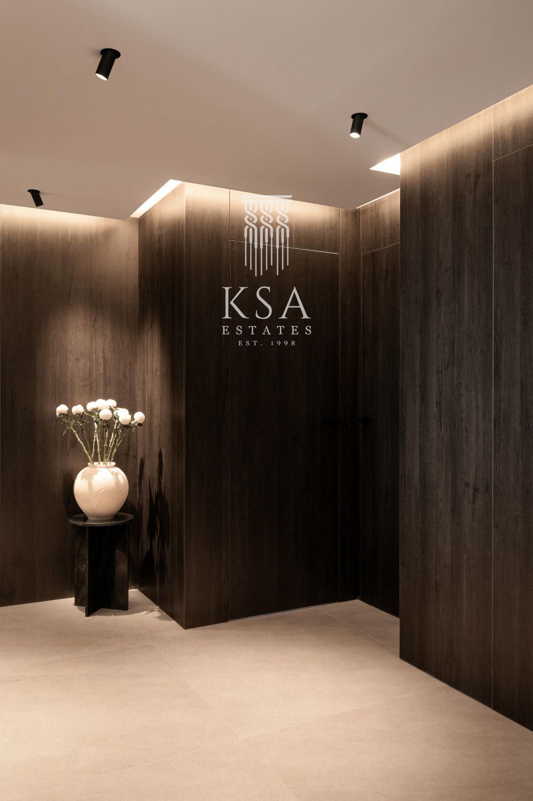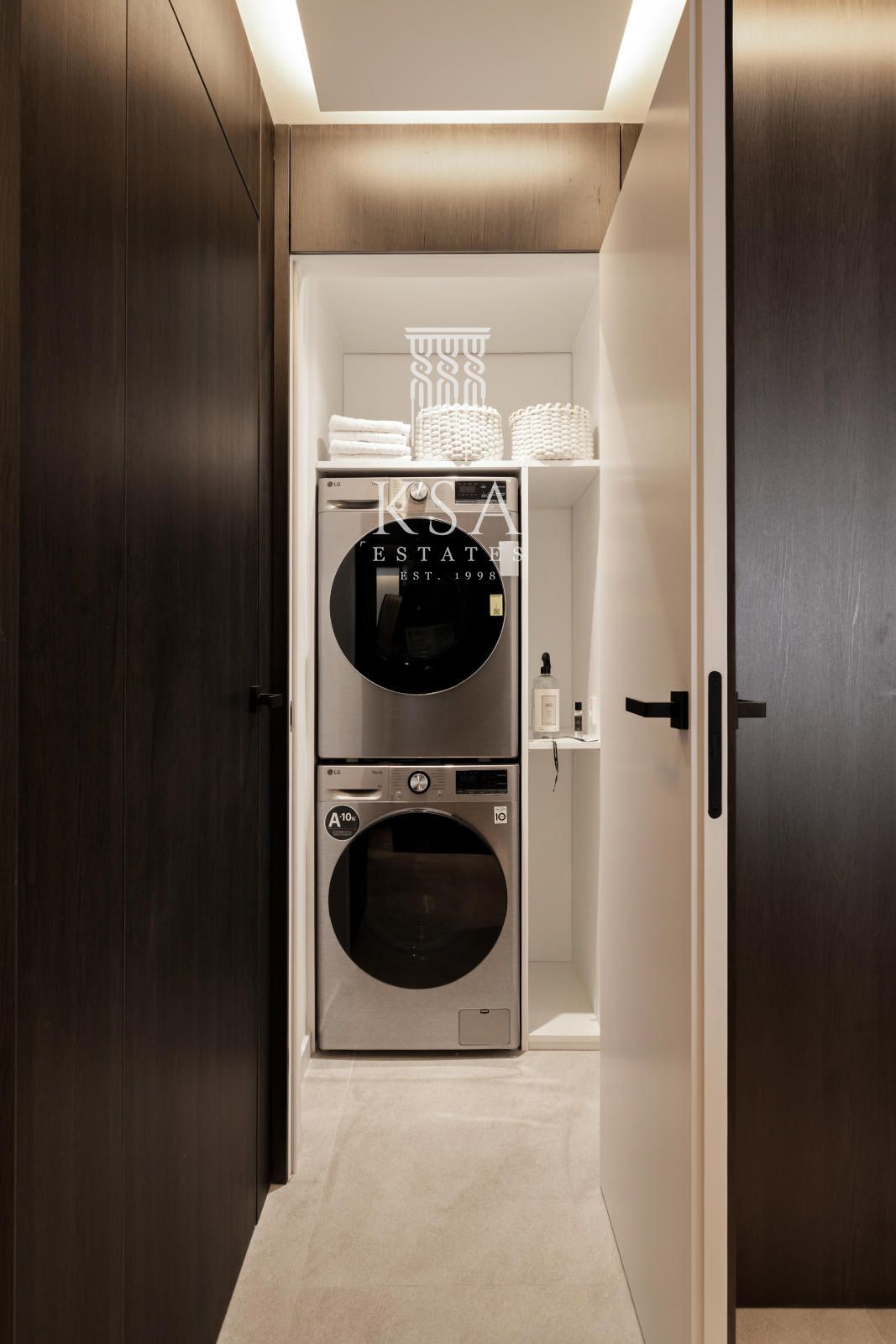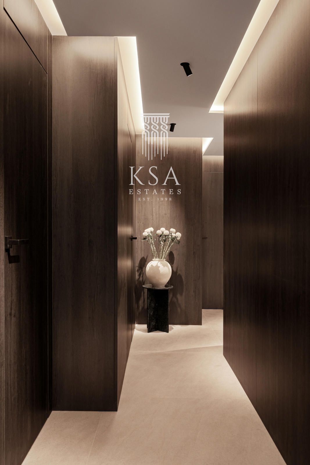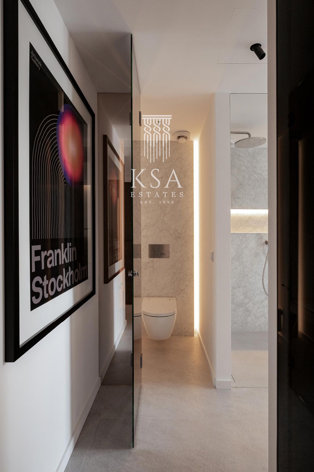 La distribución, cuidadosamente diseñada, cuenta con tres dormitorios, cada uno con baño en suite, garantizando confort y privacidad tanto para residentes como para invitados. Un aseo de cortesía, elegantes suelos de mármol y una cocina totalmente equipada de la marca Gaggenau refuerzan la sensación de calidad en toda la vivienda.
